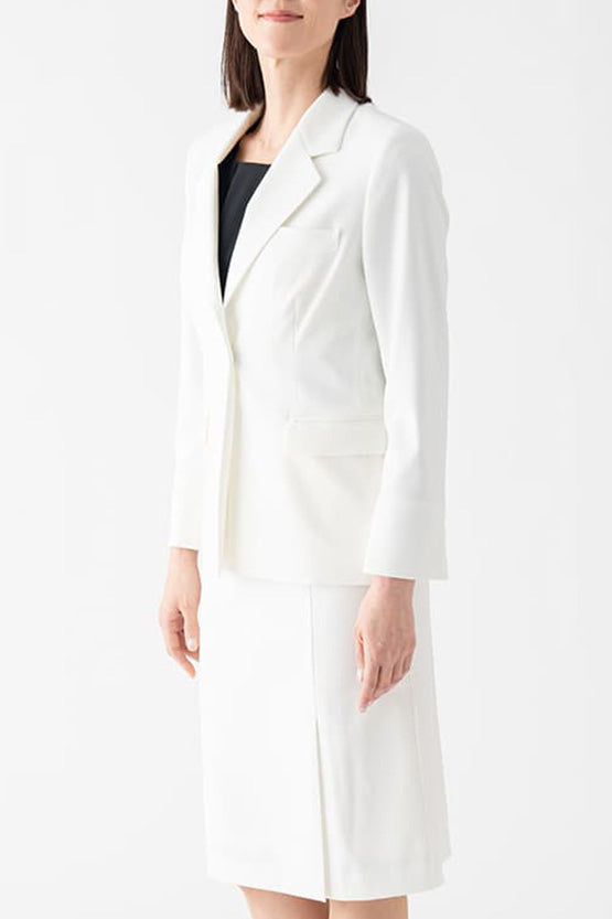 Pairing it with my favorite smart stretch bolero length jacket, I have it in navy and greige. The length and shape are beautiful, and they look neat and stylish. It doesn't stretch your feet and is easy to move around, so it's very nice without the stress of wearing it.