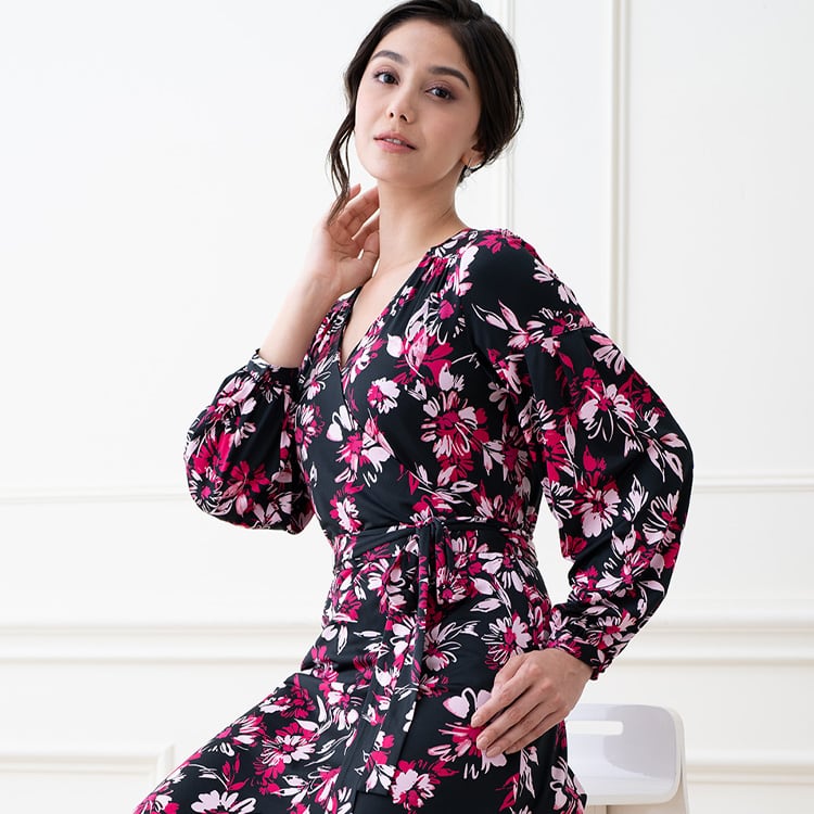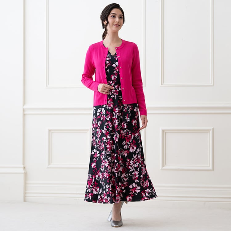 Long Length: Pink Graphical Flower Cache-Coeur Long
