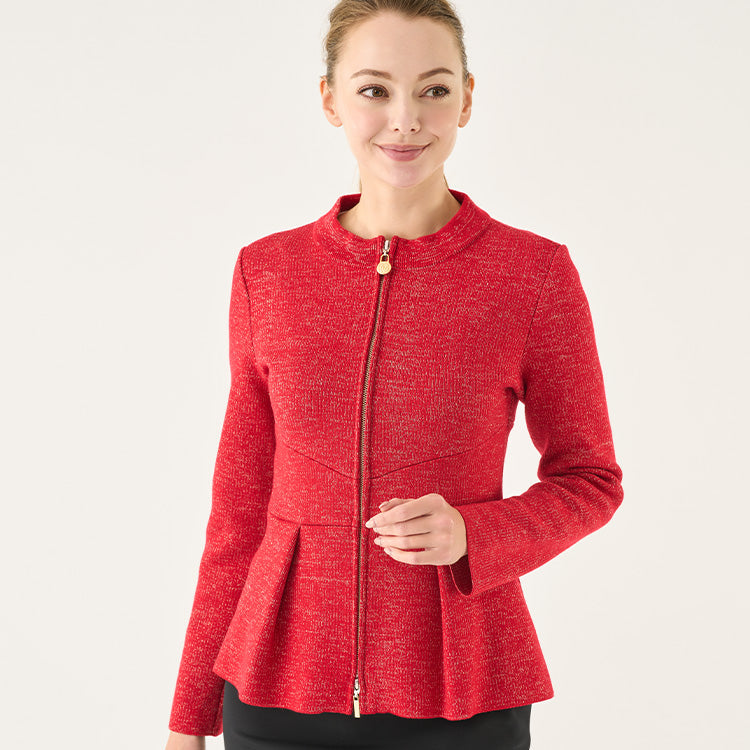 The gorgeous red with glitter and the peplum silhouette are very nice. It took a bit of courage to wear it, and I hadn't worn the sleeves for a while since I bought it, but when I took the plunge and went out, the good materials and design gave me a gorgeous yet elegant impression, and when I noticed it, I was flabbergasted. It's surprisingly easy to match, so it's a nice miscalculation that it's perfect to wear and match. It's also really easy to maintain.