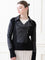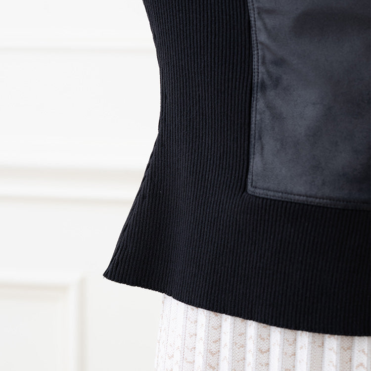 The panel lines change the material to create a visual effect that makes the waist appear shaped. The tightly woven, beautiful ribbed knit also shapes the actual waistline. The large collar also makes the face look smaller, making this a well-calculated rider's jacket.