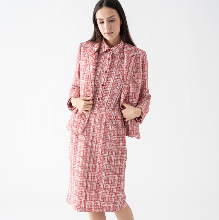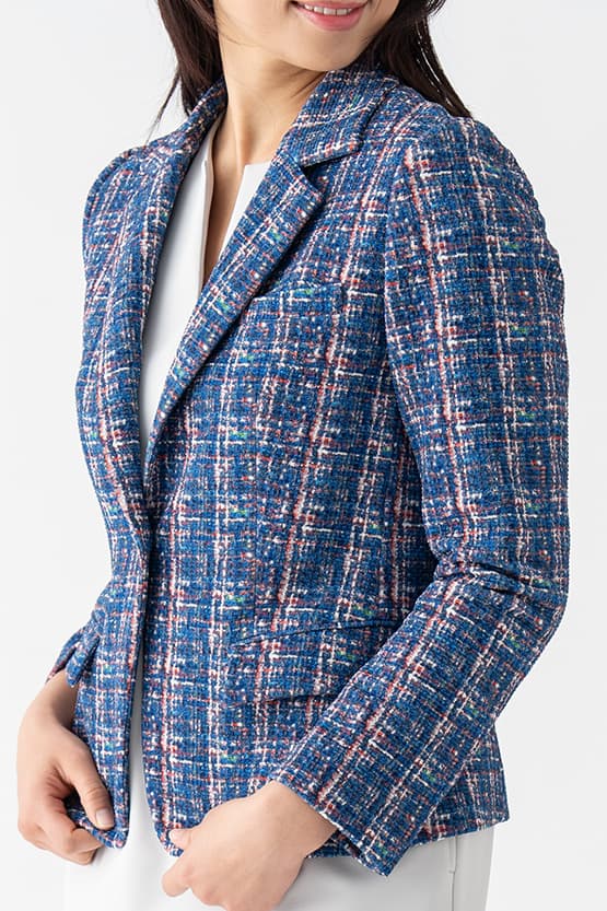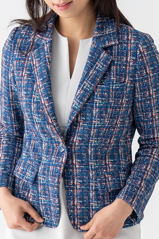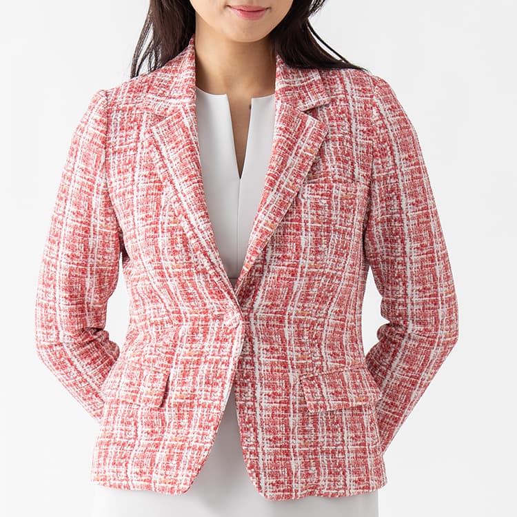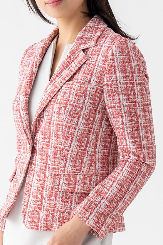 Pair this jacket with its matching skirt or trousers for a sleek suit set-up