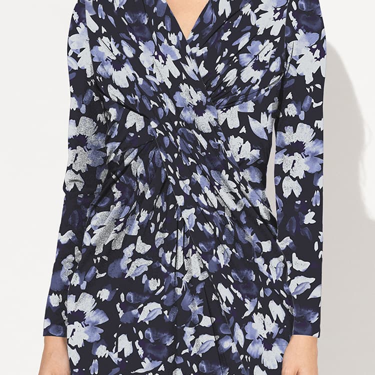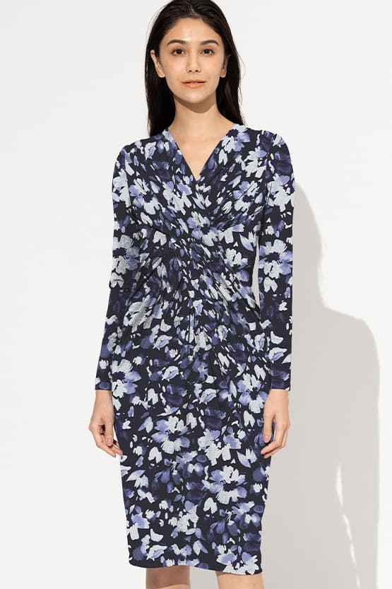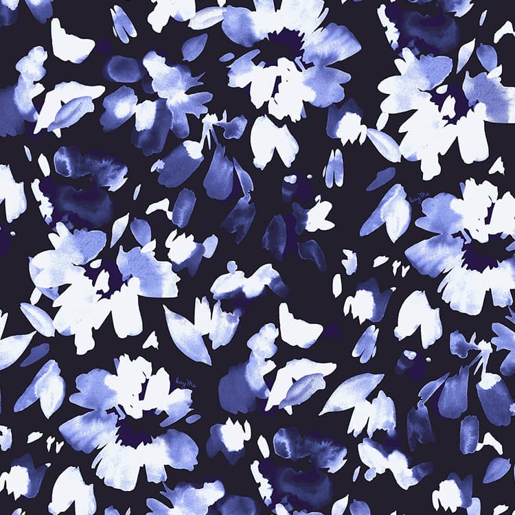 The calm navy background and gradient flower print is a revival of the popular print that sold out in an instant. A sophisticated and elegant look perfect for work.