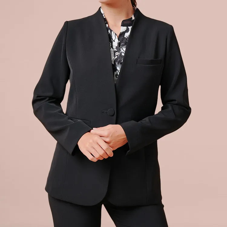 The long length that covers the hips emphasizes the vertical line and gives a clean impression. It's easy to make it look like a suit by pairing it with pants or a dress made of the same material.