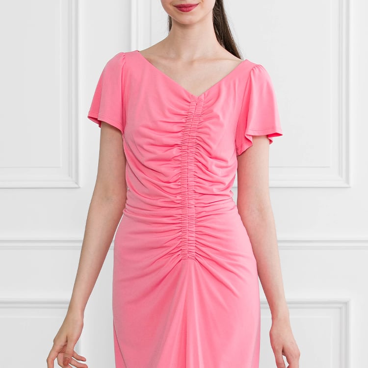 Pink V Gather Dress